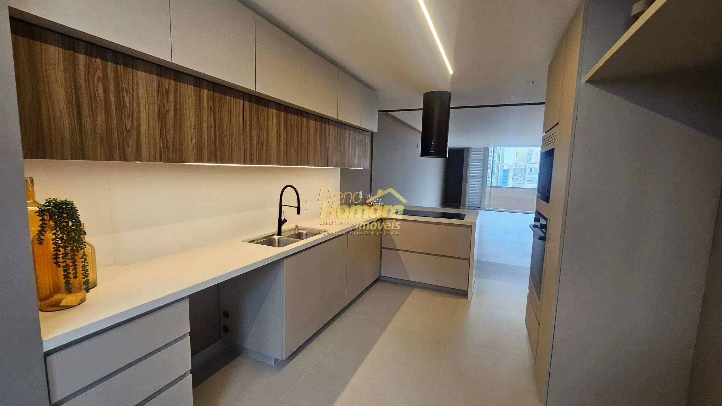 Cozinha planejada e integrada à sala, perfeita para quem valoriza praticidade e convívio